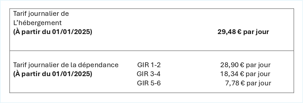 En EHPAD, il existe 3 tarifs journaliers :